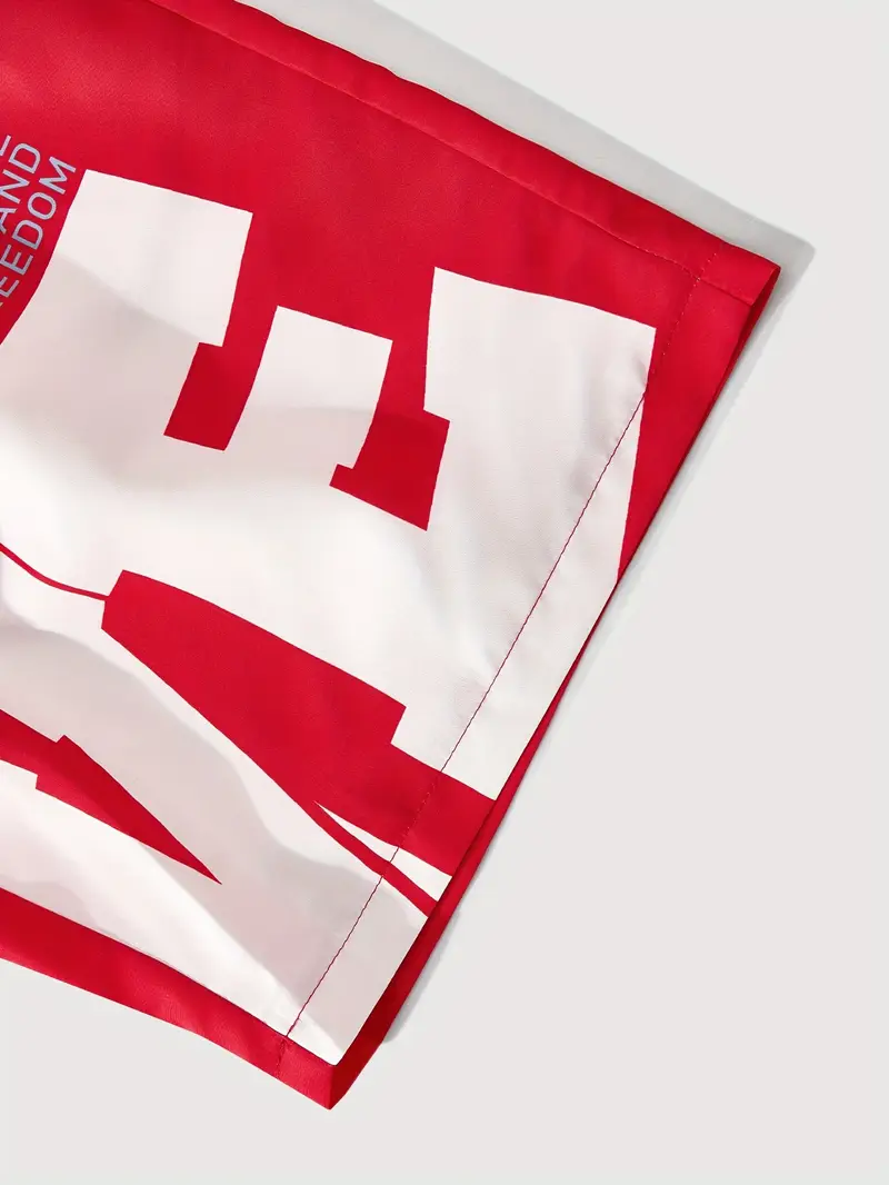 Men’s Casual Short Pants Polyester, 125g, Lace Up, Regular Fit, Non-Stretch, Woven, 150, Alphabet Pattern